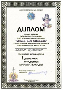 On October 21, 2015 the Akimate of the Almaty region organized the international poets’ aitys devoted to the 200-th anniversary of the national poet Суюнбай Aronuly in the town of Taldykorgan . The 4-year students of the specialty “The Kazakh Language and Literature” of the Eurasian Humanities Institute Syrym Auyezkhan and Tanzharyk Yerzhan took part in this event.