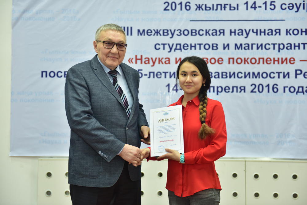 The Institute will publish the prize-winners’ reports in the Collection “Materials of the XVIII-th Inter-university scientific conference of students and undergraduates “Science and the New Generation – 2016”, dedicated to the 25th anniversary of Independence of the Republic of Kazakhstan”.
