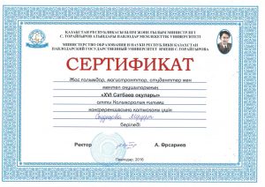 According to the results of the conference, Mukhitbeck Madina was awarded the II degree diploma (scientific supervisor: Master of Pedagogical Science, senior lecturer Rainbekova G.S.), Syzdykova Meruyert received the certificate for active participation in the conference (scientific supervisor: Candidate of Pedagogical Science, Docent Shormakova A.B.)