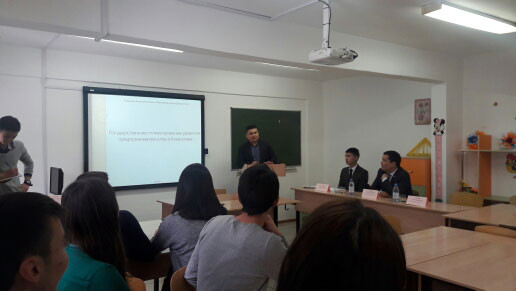 On October 25, 2016 the department of “Economic and mathematical disciplines” has organized a round table on the subject “The State Stimulation of the Development of Business in Kazakhstan” with participation of the representative of fund “Damu” Zh. M. Zhetpeisov, the businessman of agricultural consulting E. M. Mustafin, the expert of National chamber of businessmen A. T. Onaybayev. Students of the EAGI have taken the active part in the work of the round table: asked questions and stated the judgment.