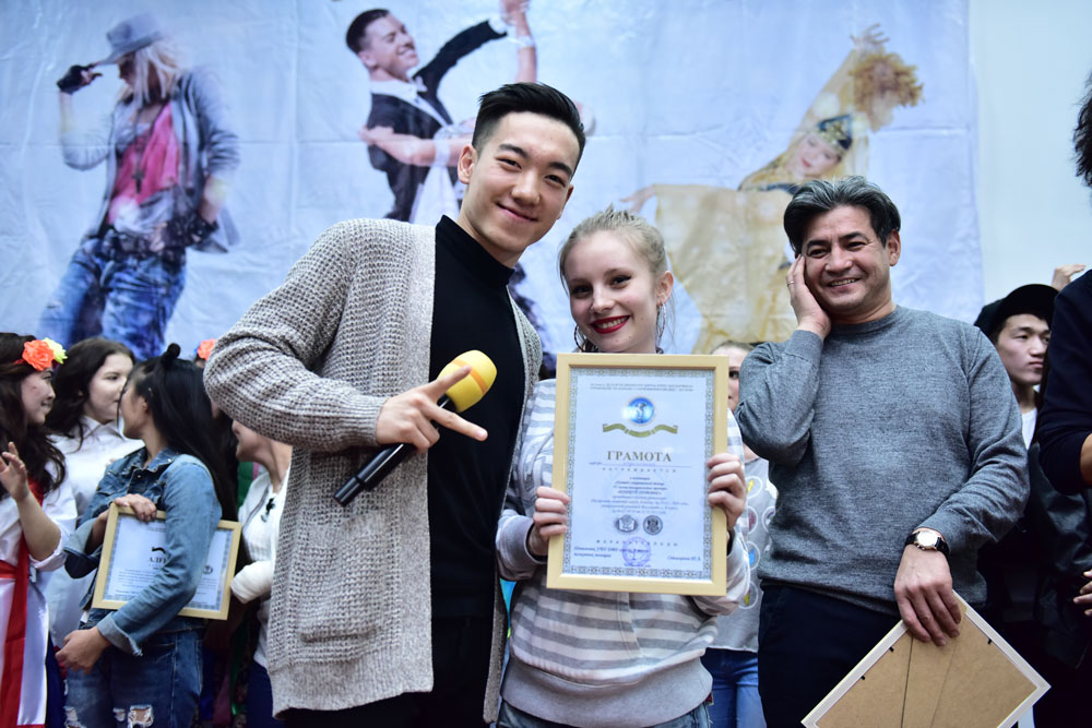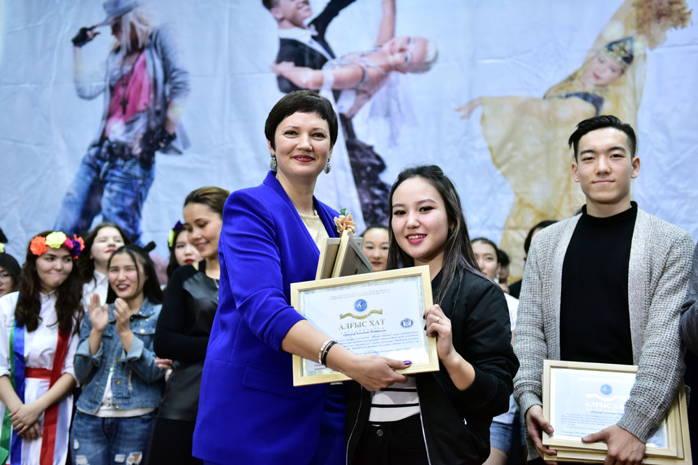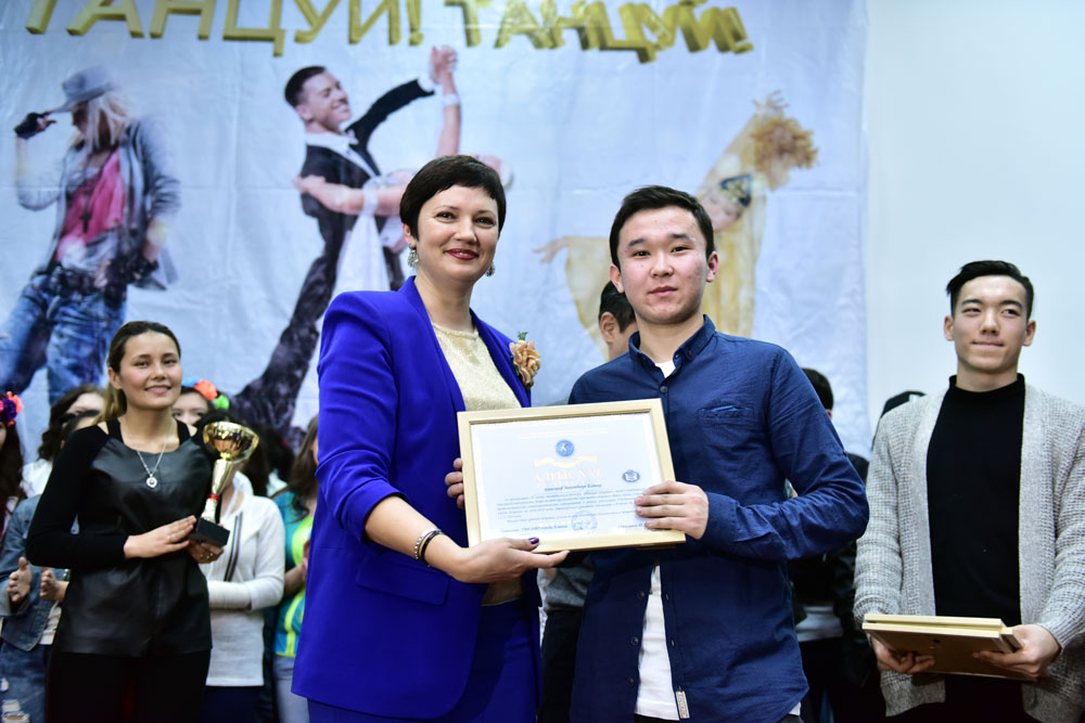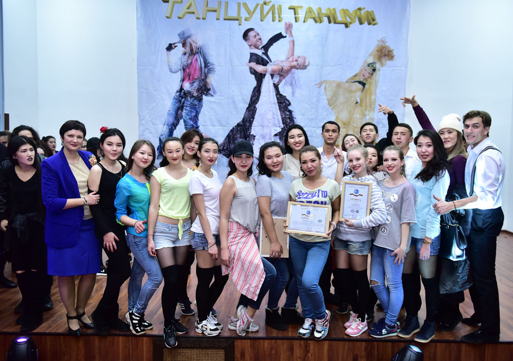 According to the results of the project the departments, which presented their dancing groups, were awarded with diplomas. So, the team of the Department of Pedagogy was awarded in the “Best modern dance” nomination, the team of the Department of Kazakh and Russian Philology became the “Kings of the dancefloor”, the Department of State and Legal Disciplines won the “Discovery of the year” nomination and the “Mind-blowing show” nomination was given to the Department of Foreign Languages. The “Winners” nomination together with a Cup was won by the team of the Department of Economic and Mathematical Disciplines.