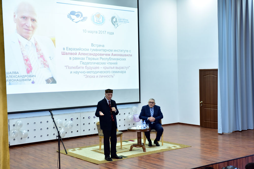 The First Prorector of EAGI, the Candidate of Psychological Science, Professor Issmayilov Amangheldy Dzhaksilykovich made a greeting speech. The invited guests of the meeting were: President of the International Association of public unions “International Centre of the Humane Pedagogy”, Director and scientific supervisor of the children’s art studio “Basti-Bubu”, the Candidate of Sociological Science, Psychologist Paat Shalvovich Amonashvily ; the Doctor of Philological Science, Professor, Deputy Director of the Educational Centre “Humane Pedagogy” (Astana city) Nursulu Zhamalbekovna Shaimerdenova : the Candidate of Philological Science, Docent of the Kazakh National Academy of Arts named after T.K. Zhurghenev Mendyganym Dzhamalbekovna Shaimerdenova.