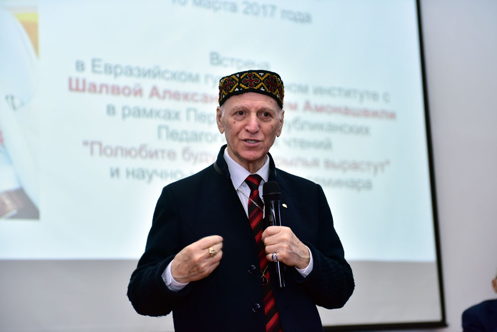 In his speech Shalva Alexandrovich accounted for the basic principles and methodical approaches of Humane Pedagogy, the main commandments of a Teacher. Answering the questions of the teachers and the students he marked that “The children of Light need a teacher of Light”.