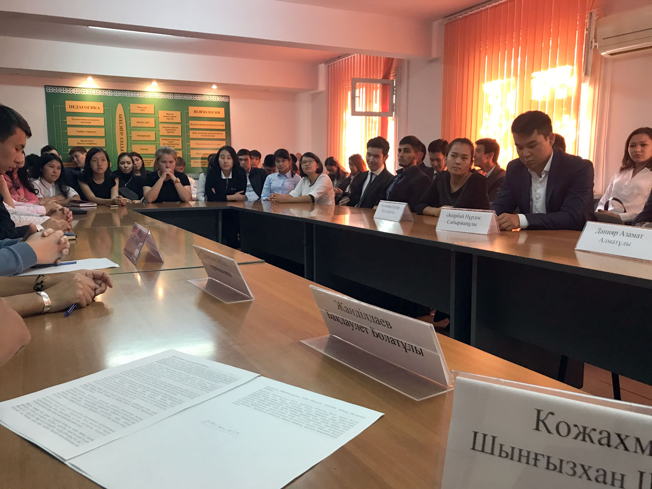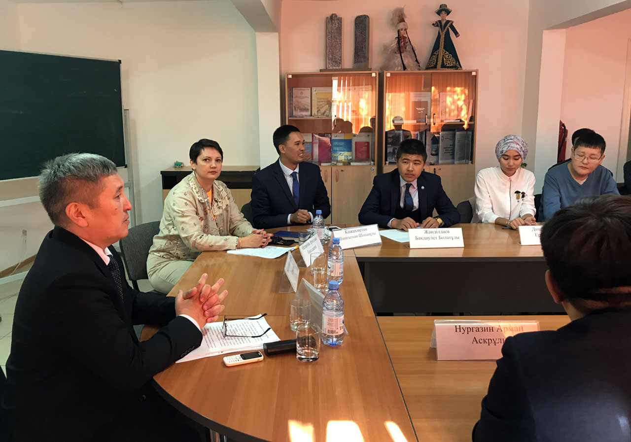 Constitution as a guarantee of freedom of the Republic of Kazakhstan and the Law of the Republic of Kazakhstan: “About counteraction against corruption”. According to the programme of the panel talk the Head of the Department of protection against corruption of the Department of the Agency of the Republic of Kazakhstan on the affairs of the state service and counteraction against corruption of Astana city Rahmatulin Askar Rashitovich, the first deputy Chairman of the branch «Бірлік» of the party «Нур Отан» Kozhahmetov Chinghizhan Shopanovich made speeches. On the completion of the panel talk the conclusion and the exchange of opinions were made.