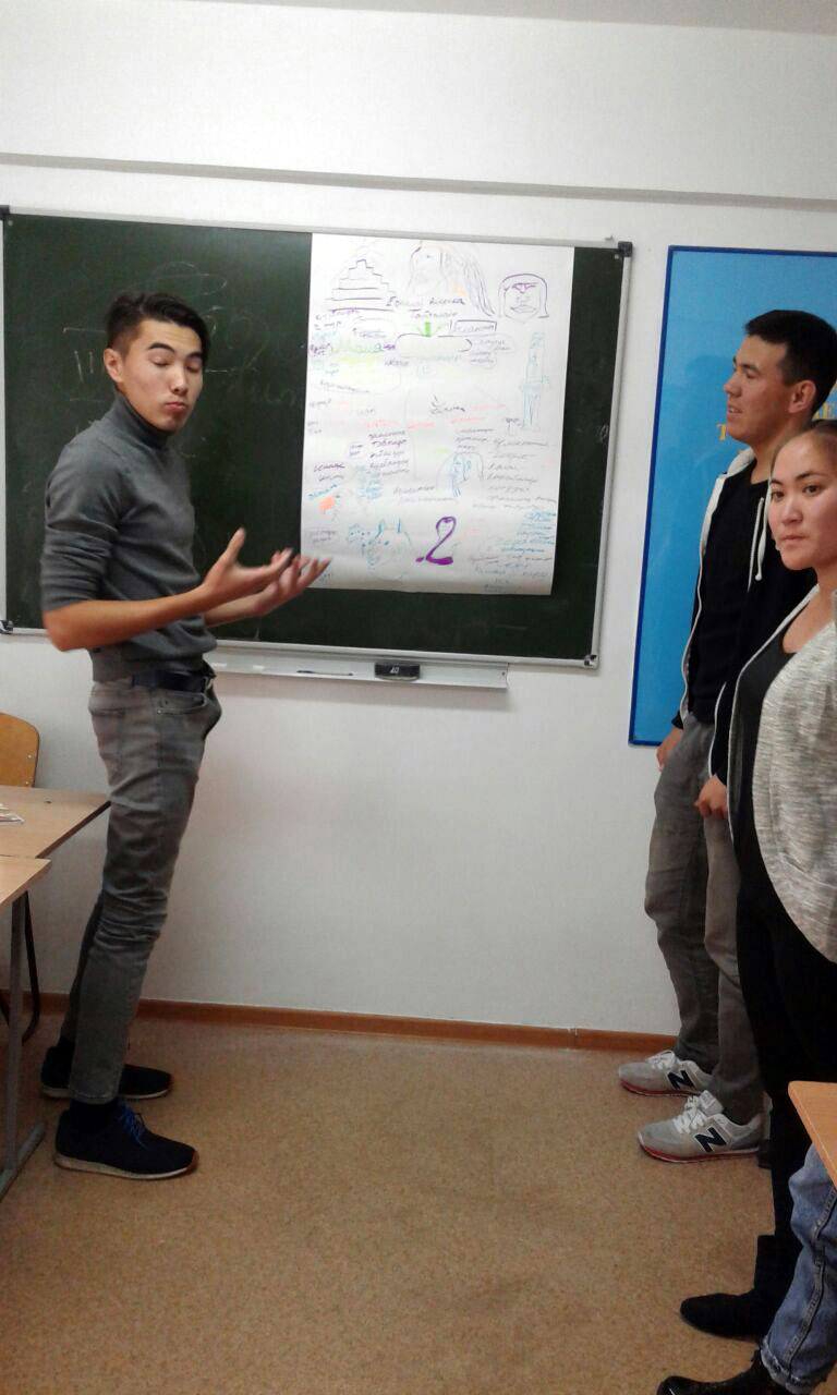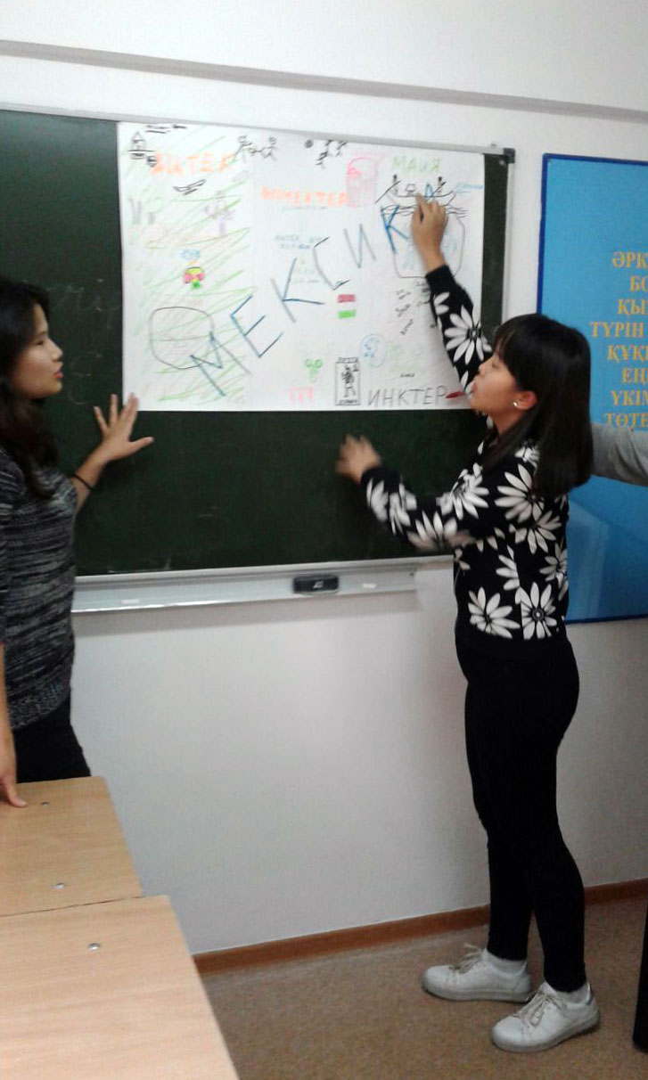 The teachers of the Department of Pedagogy are actively introducing modern pedagogical technologies in the educational process. Thus, Docent, the Candidate of Historical Science Gulnar Bahiyevna Suleimenova uses the method of team teaching in the third course of the educational programme of specialty: 5В011400 «History». On the eve of the production practice the future teachers of History being divided into teams, thus modeling the school educational process, conducted the lesson on the theme: “Ancient America”.