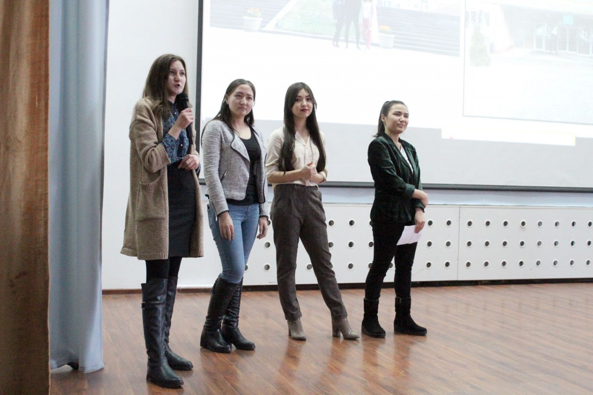 On 13 February 2018 the coordinator on the academic mobility and international relations, the member of the Association of the graduates of the Eurasian Humanities Institute A.T. Sandybayeva and Prorector on the educational work Ya. N. Ospanova organized the meeting of the students who took part in the programme of the academic mobility with the students of the first and second courses. The initiative of the students who returned after their training abroad and in other Kazakhstani higher educational schools was to share experience. The students prepared colorful slides and told about their learning in the Institutes where they studied during the whole semester. The participants of the meeting were interested in Omsky State Pedagogical University, Novosibirsky State Pedagogical University, the Belorussian State Pedagogical University named after Maxim Tanka and the Karabyuk University and our Kazakhstani higher schools. The girls told not only about the educational process, but also about the weather, food, financial expenditures, sightseeings of the city and the country, gave useful advice to future participants of the programmes on the academic mobility. A lot of questions concerning the collection of documents, visas and the language level were asked.