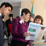 In the conference hall the First Prorector of EAGI, Professor Ismayilov A.D. made a speech before the guests and he marked that it is very important to choose the future Institute and profession. And also the Dean, Candidate of Philological Science, Docent Mamadil K.A., Prorector on the educational work, Candidate of Pedagogical Science, Professor Ospanova Ya.N., Chairperson of the CYA N. Tyrnyhan gave the information about the out of class activities in the Institute and made a presentation about the student life of EAGI.