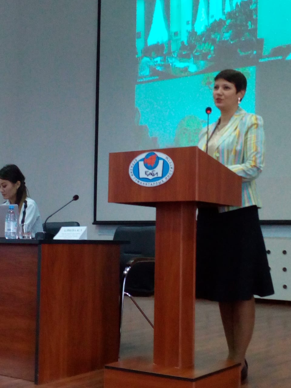 Prorector on the educational work of the Eurasian Humanities Institute CPSc, Professor Ya.N. Ospanova and the Head of the EAGI Department of foreign languages CPSc, Docent L.V. Volkova addressed the audience with the greeting words.