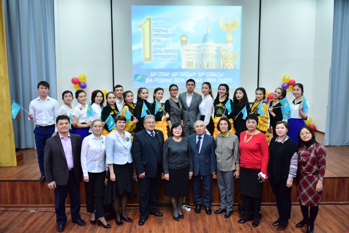 The Rector of the Institute Academician A.K. Kussayinov made a greeting speech in which he marked that the Day of the First President of the Republic of Kazakhstan was initiated to mark and acknowledge the prominent merits of the First President of Kazakhstan Nursultan Abishevich Nazarbayev in favor of the Republic.