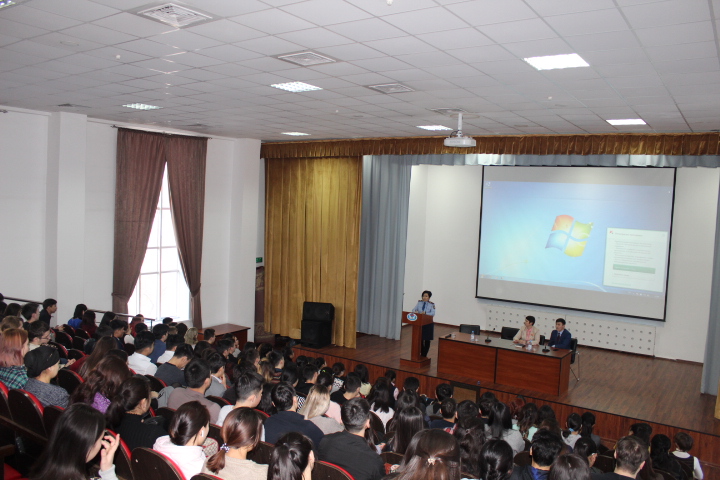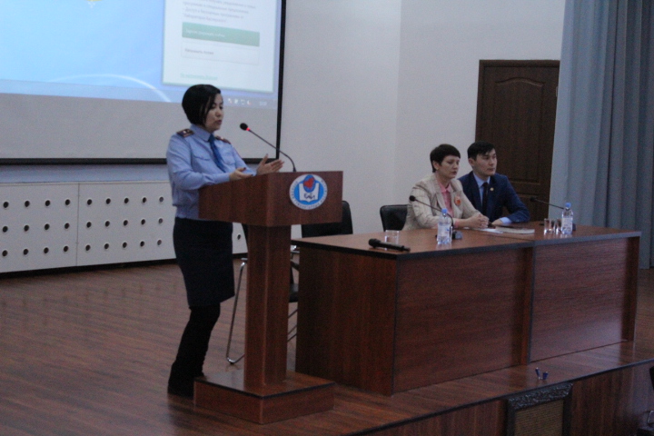 On 12-th February at the Eurasian Humanities Institute there was held an event on preventing violations with the participation of the senior inspector of the Department of the Police of Asana-city, the major of the police A.A. Serikpayeva and the representative of the Akimat of Astana – city A. Tastemir. Prorector on the educational work Ya.N. Ospanova made a greeting speech before the audience. On the completion of the event the students asked questions on this problem.