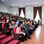 The greeting words were said by the First Vice-Rector of EAGI Professor Issmayilov A.D., Vice-Rector on educational and scientific work Professor Akhmetov K.A., Vice-Rector on the educational work Professor Ospanova Ya.N., the Chairperson of the CYA, Master of Pedagogical Science Tyrnahan N., the executive secretary of the admission committee and anti-corruption club «Саналы Ұрпақ» Aktayev Zh. and also the holder of the RK President scholarship Abdiraman N. who paid attention to the importance of choosing the future university and profession, shared information about the social activity at the Institute and made presentation about the EAGI student life.