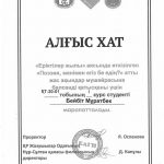 The winners and the participants of the competition were awarded with special diplomas, honorary diplomas and the collection of the poems «Абайдың қара сөздері». For the active participation the student of the 3-rd course of group ЮК-18-02 Abuzhanov Abylaihan, the student of the 1-st course of group ҚТ-20-01 Beibit Muratbek, the student of the 1-st course Auyezhan Zhanerke were awarded with the honorary diplomas.