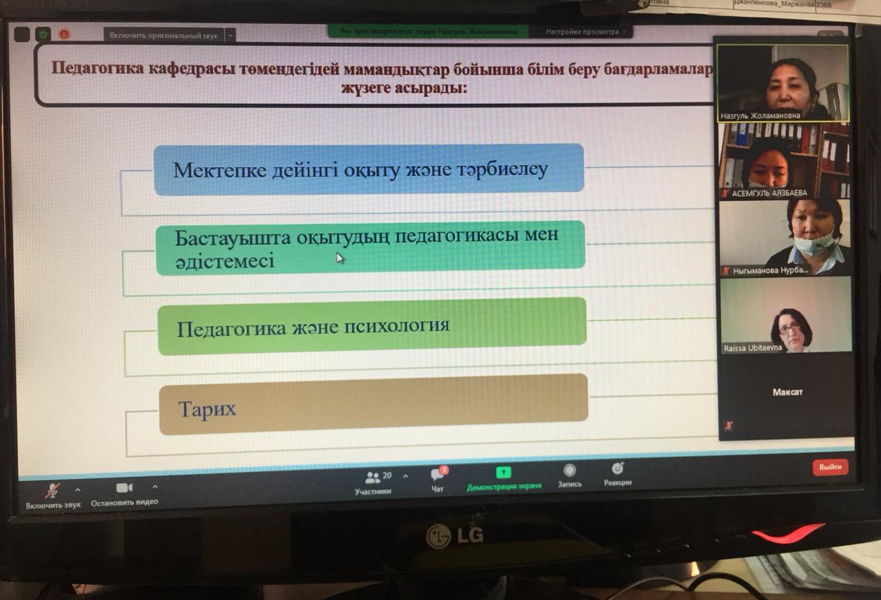 Under the leadership of the senior teacher Bolatbekova N.Zh. the detailed information about each specialty of the Department of Pedagogy was given by Docents Nakipbekova R.U., Suleimenova G.B., Ayazbayeva A.T., the teachers Okay A., Turmanova Zh.Ye., Zharmahnova G.Ye.