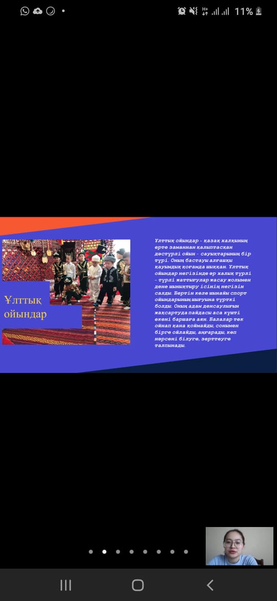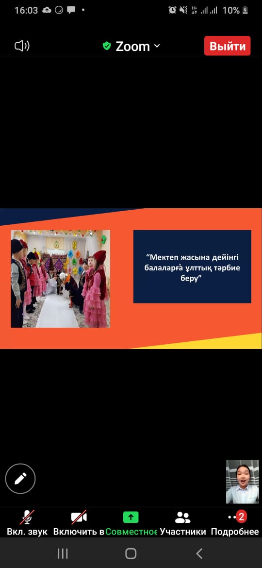 On 30-th March 2021 the Department of Pedagogy conducted the master class on the educational program “Pre-school education” in the scientific-methodical circle of the students «Зерек бала» on the theme: “ Initiation of the pre-school children to the national culture (peculiarities of acquaintance with national traditions)”. In the course of the master class the students made reports about the initiation of the pre-school children to the national values, education of citizenship and patriotism, love for Motherland, respect to state symbols, national traditions and also the acquaintance of pre-school children with interesting methods of introduction to the national culture (technology of Асык»), made presentations of video-lessons. At the end of the master class there was made the analysis, and reflection was organized.