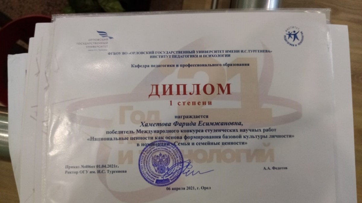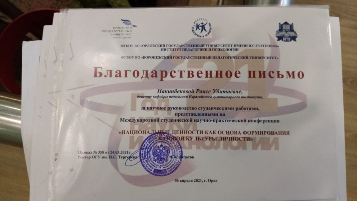On 6 April 2021 the International student scientific-practical on-line conference “National values as the basis of the formation of basic culture of a personality” on the base of Orlovsky state university named after I.S. Turghenev (Russia) took place.
