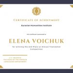 On September 30, an online competition for translation from English, German, and Chinese among students was held at the Department of Foreign Languages. The event was attended by students of the second, third and final courses of language specialties. Students showed musical, poetic performances and also presented their own version of the translation of the poem by I. Brodsky and the translation of the prose text. The Head of the Department L.V. Volkova congratulated the winners, after that the competition works of students were demonstrated and the winners were awarded. All participants were awarded with diplomas for participation.