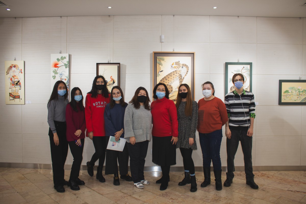 On November 24, 2021the students of the group PDT-19-01 of the Foreign languages department of the Eurasian Humanities Institute under the guidance of Docent Arenova Gulzhan Ukubayevna visited the Korean folk painting exhibition «Minhwa» in the Korean Cultural Center of the Embassy of the Republic of Korea.