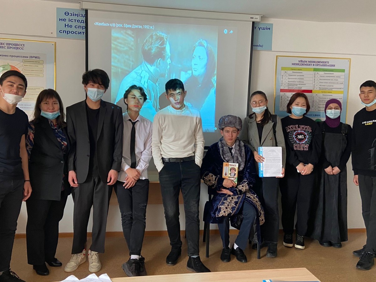 On December 2, 2021, m.e.sc., senior teacher of the department of economic and mathematical disciplines A.G. Kozhakhmetova held curatorial hour in the group F-21-01 (1 course, educational program “Finance”) “Zhuz zhyl zhyrlagan zhurek” dedicated to the 175th anniversary of the birth of Zh. Zhabayev. During the curatorial hour, participants get acquainted with the life and work of the great akyn through the prism of his works. In addition, they watched film about Zh. Zhabayev and read famous works of the poet, including “Khalyk Kazynasy”, “Leningradtyk orenim”, “Algaday turaly arbir oy”, “The Last word”, “My Kazakhstan” and others.