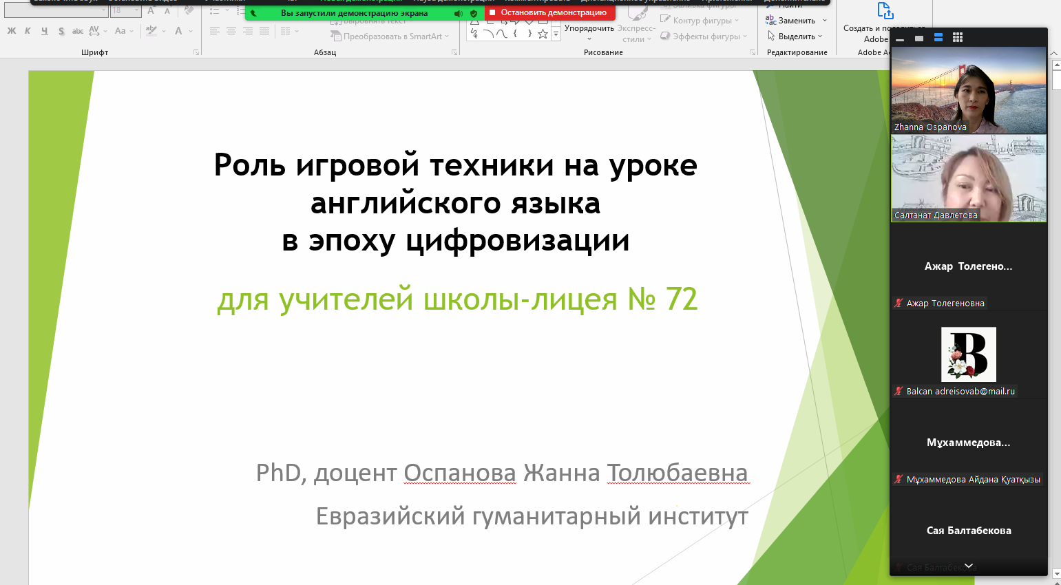 During the seminar, the participants got acquainted with the available Internet resources and various sites recommended for use, teachers shared their discoveries. An active discussion took place between the lecturer and teachers, various options for gaming technology were discussed at the English lesson, taking into account the age characteristics of students and their interests.
