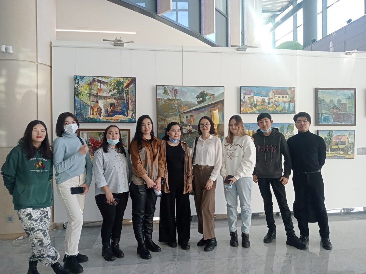 On February 19, 2022, curator, senior lecturer of the Department of Foreign Languages Khassilan Fariza with 2nd year students of the educational program “Translation major” (academic group AI-20-01) visited the exhibition “Meta-Universe”. Gulzhan Yessenbayeva, guide of the Arman-Tour agency, made presentation in English to the audience.