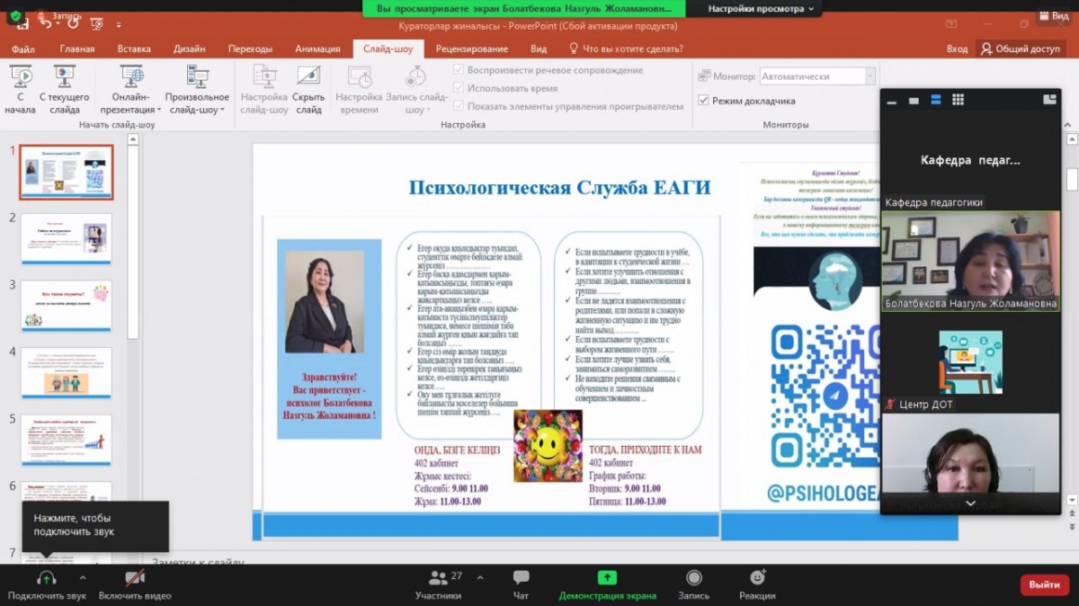 On March 11, 2022, the Psychological Service of the Eurasian Humanities Institute organized online seminar on the topic: “Socio-psychological adaptation of students”.