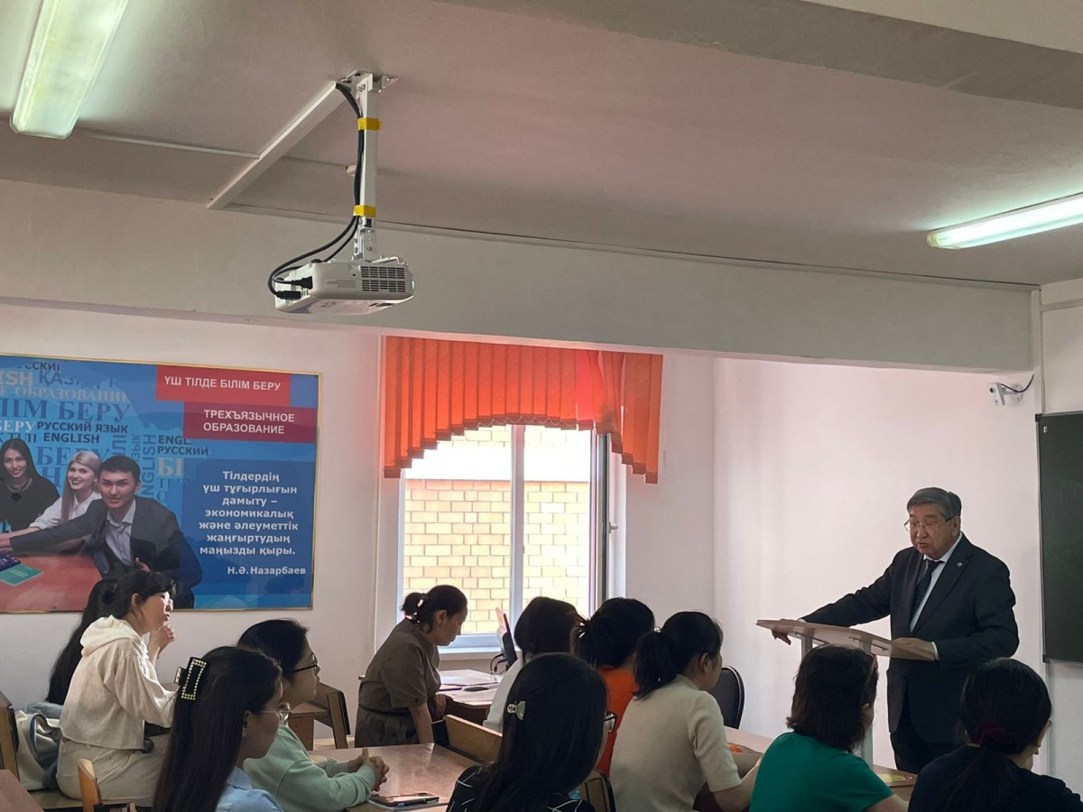 As part of the implementation of the Decree of the Head of State K-Zh.Tokayev on holding a referendum on amendments and additions to the Constitution of the Republic of Kazakhstan, explanatory meeting with students was organized at the Department of Pedagogy. The head of the Department of Legal Disciplines, PhD in Law, Professor Ydyrysov K.Z. and senior lecturer of the department Aitkulova A.M were invited to conduct the conversation. At the end of the meeting, students received answers to their questions.
