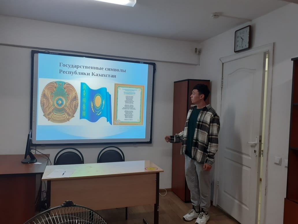 On June 2, 2022, curator Mazhitova B.B. held curatorial hour for students of the academic group F-19-01 (educational program “Finance”) on the topic: “Symbols of the Republic of Kazakhstan – national pride”. The purpose of the curatorial hour is to foster students’ feelings of patriotism and love for their homeland, respect and care for the state symbols of our Motherland.