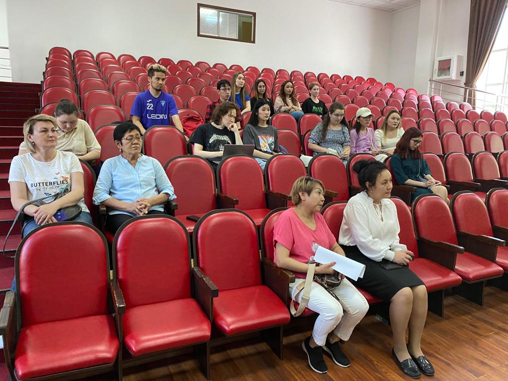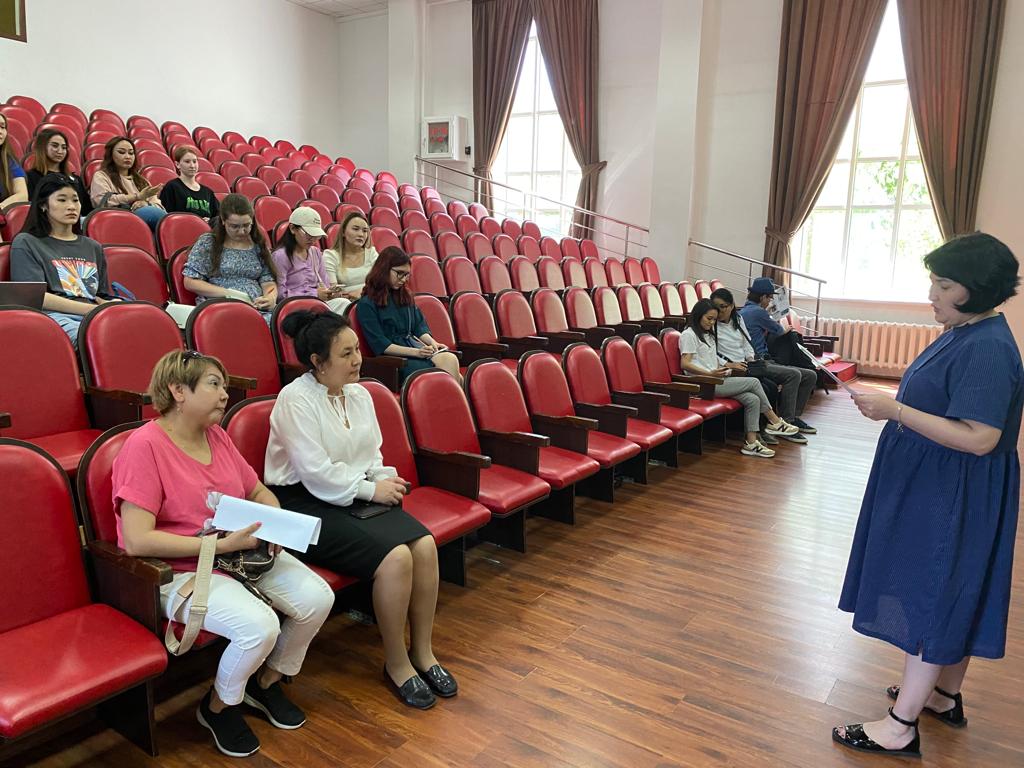 On June 9, 2022, with the assistance of the administration of the Department of Foreign Languages, the meeting of students and teachers with teachers of the Department of Theory and Practice of Translation of ENU named after L.N. Gumiliev took place on the issue of admission to master’s and doctoral studies in the educational program “Translation”. The head of the Department of Theory and Practice of Translation Eskindirova Manshuk Zhumabayeva spoke to the audience, told about the rules, admission conditions and answered questions of interest to the participants of the meeting.