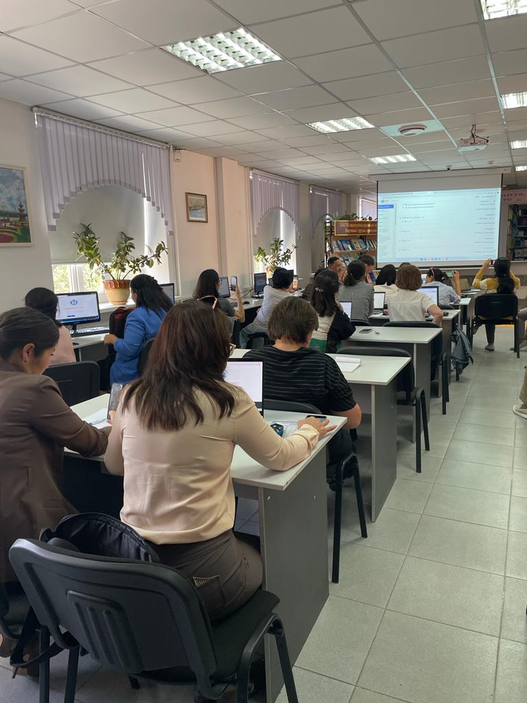 On September 7, 2022, the training seminar “Working on the Moodle platform” for the teachers of the institute was organized by Baimamyrov B.A., deputy head of the Center for distance learning technologies. The training seminar was held in the library hall of the institute.