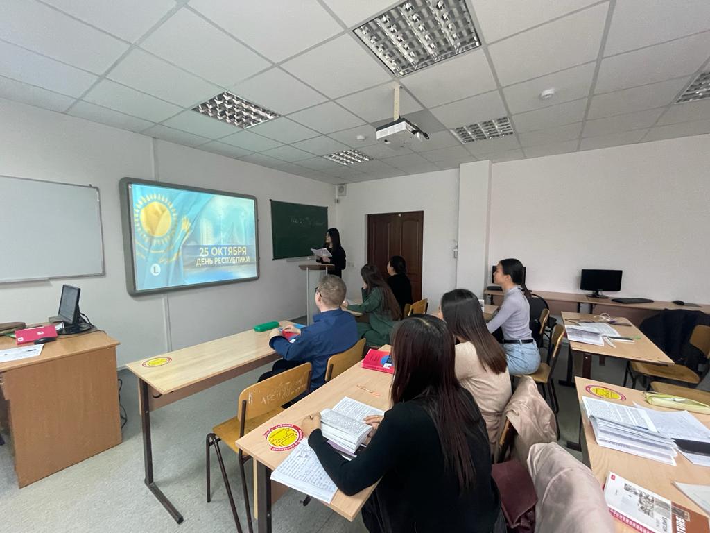 From October 17 to October 22, 2022, as part of the celebration of the Day of the Republic of Kazakhstan, round tables were held at the Department of Foreign Languages on the topic: “Citizen of the Republic of Kazakhstan: the Constitution – freedoms, rights and obligations” (academic groups: PDT-21-01; AI–21- 01; ShTT-22-01; IYAT-22-01; curators: Nikulshina N.V., Kairova Zh.M., Nygmetova M.O., Kuanysheva S.M.).