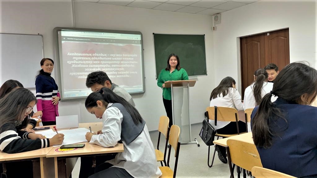 On November 24, 2022 senior lecturer of the Department of Kazakh and Russian philology of the Eurasian Humanities Institute Nurbanova A.K. held curatorial hour with students of the group KT-22-01 of the educational program “Kazakh language and literature” on the topic “Academic honesty”. The purpose of the curatorial hour was to form among young people such values as honesty, justice, integrity and patriotism, intolerance to corruption.