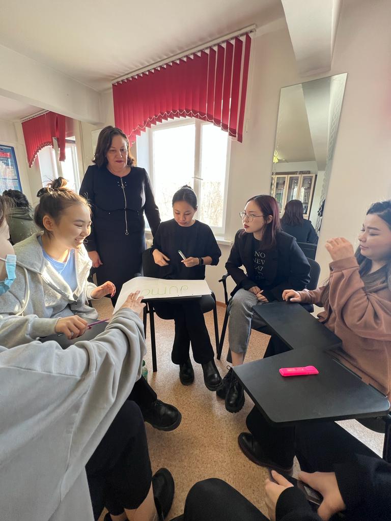On February 16, 2023 Doctor of Psychology, Professor T.A. Abdrashitova held a training seminar “Skills of a Successful Specialist”, as part of the implementation of the activities of the expert platform to promote the idea of the creative role of youth in building just and strong Kazakhstan. The participants of the training seminar were students of educational programs 6B01102 – Pedagogy and Psychology, 6B01606 – History, 6B02307 – Translation major. The projects developed by the students were relevant and interesting.