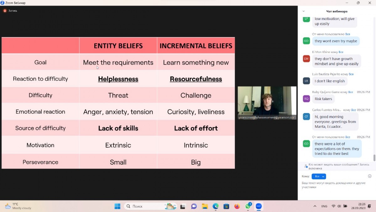 On October 2, 2023, 1st – 2nd year students of the educational program “Foreign Language: Two Foreign Languages” (academic groups ShT-22-01, ShT-23-01, IYa-23-01) under the guidance of senior teacher Sarsenova A.M. and teacher Tolkimbekova A.E. took part in the online seminar “Pearson English International Certificate Teacher Training Academy” in order to continuously develop their language abilities and expand the resource of their knowledge.