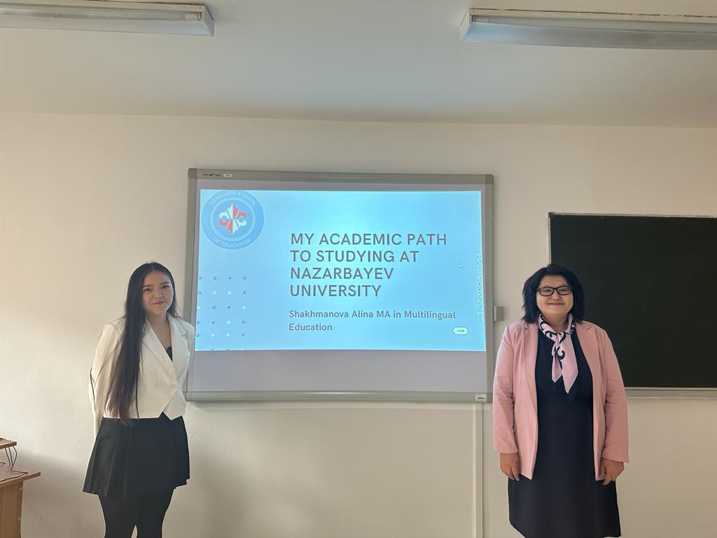 On October 27, 2023, meeting was held between 1st and 4th year students with a 2022 graduate of the Department of Foreign Languages, Alina Shakhmanova, who is currently studying for a master’s degree at the Higher School of Education (Nazarbayev University). Alina shared her experience of entering Nazarbayev University and talked about how to write a motivation letter. The meeting was held in an interactive manner, students received answers to all their questions.