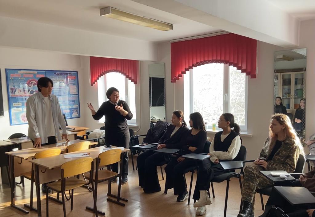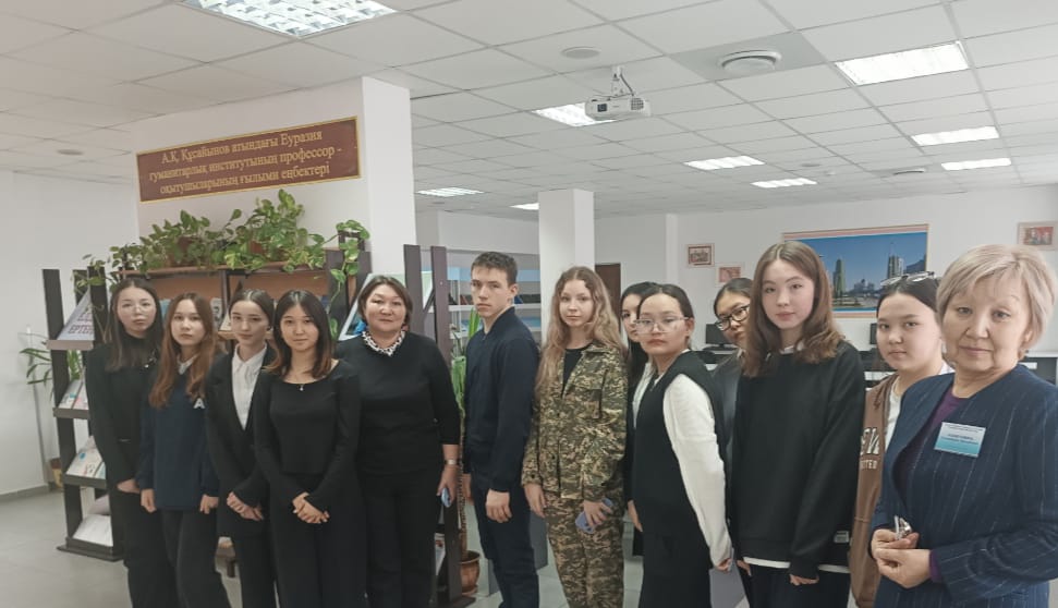 On January 24, 2024, as part of the implementation of the “Pedagogical Class” program on the basis of a cooperation agreement of the EAGI and gymnasium school No. 26, classes were held with students of the pedagogical class, organized in an active training format. The trainings were conducted under the guidance of Professor, Doctor of Pedagogical Sciences. Sarsekeeva B.S., professor Nygymanova N.T. and psychologist of the institute Mussiev A.B. Teachers’ class students also visited the institute’s library, where they got acquainted with modern scientific publications in the field of pedagogy.