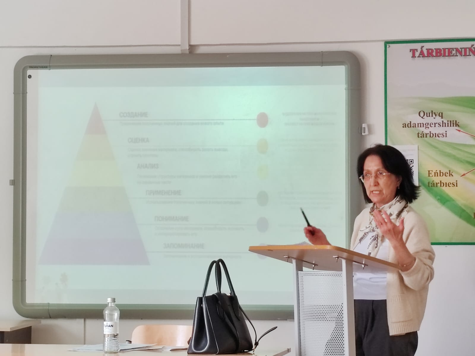 On May 10, 2024 Professor of the Department of Pedagogy R. U. Nakipbekova conducted master class on the topic: “Technologies for the development of critical thinking.” The master class participants were heads of methodological sections of EAGI departments, teachers and students. At the master class, students’ independent work was presented using various information applications and Internet platforms.