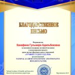 As a result of the competition, Diana Kamilzhankyzy Mammetova was awarded a 1st degree diploma, and her scientific article was included in the XII International Scientific Journal “Science and Education: New Times”.