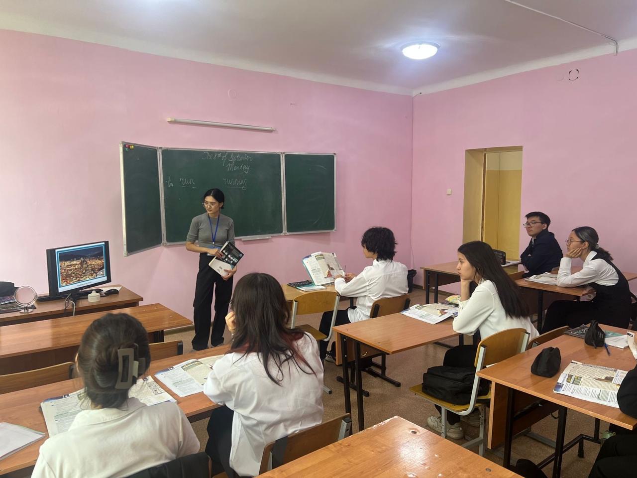Fourth-year students of the educational program “Foreign Language: Two Foreign Languages” (academic group IYA-22-01) are undergoing industrial training in schools in Astana under the guidance of senior lecturers of the Department of Foreign Languages and Translation major A.M. Sarsenova and A.A. Gylia.