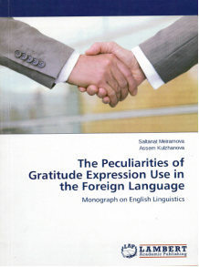 The Peculiarities of Gratitude Expression Use in the Foreign Language : Monograph on English Linguistics  / S Meiramova, A Kulzhanova.- Астана, 2015.- 55с. ISBN 978-3-659-75683-2
