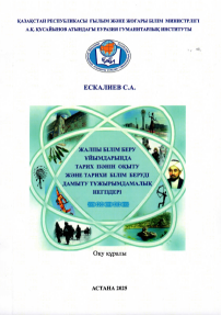 Жалпы білім беру ұйымдарында тарих пәнін оқыту және тарихи білім беруді дамыту тұжырымдамалық негіздері : Оқу құралы  / С.А. Ескалиев.- Астана: " ИП Ахтаев У. Е", 2025.- 175б. ISBN 978-601-14-0629-1