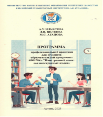 Программа профессиональной практики для студентов образовательной программы 6В01704 " Иностранный язык: два иностранных языка" : учебная программа / А.У. Ильясова, Л.В. Волкова, М.С. Агапова.- Астана: ИП " Ахтаев У.Е.", 2025.- 60с.