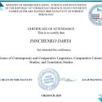 On October 24, 2025, Senior Lecturer of the Department of Foreign Languages and Translation Studies A.M. Sarsenova and student of academic group IYA-23-01 (3rd year, educational program “Foreign Language: Two Foreign Languages”) D.V. Panchenko took part in the international scientific and practical conference “Modern and Comparative Linguistics, Comparative Literature, Problems of Translation Studies” at Urgench State University named after Abu Rayhan Biruni (Faculty of Foreign Philology, Urgench, Uzbekistan) . They presented a report entitled “Artificial Intelligence in Education: Revolutionizing Teaching and Learning” at the plenary session, for which they received a letter of appreciation from the dean and the head of the department.