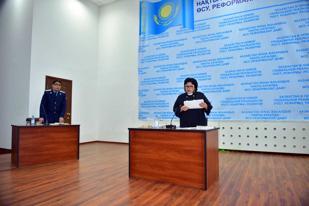 31 марта 2016 года в Конференц-зале Евразийского гуманитарного института прошел выездной показательный суд с участием судьи специализированного административного суда Аркабаевой К.Ж., представителя прокуратуры  Алматинского района г.Астаны Мустафина К., заместителя начальника местной полицейской службы УВД района «Алматы», подполковника полиции Айшыбеков А.А., представителей СМИ, а также преподавателей и студентов института. Предметом судебного разбирательства явились мелкие хулиганства, квалифицируемые как административные правонарушения, предусмотренные Кодексом об административных правонарушениях Республики Казахстан. Показательные судебные процессы уже стали традиционными профилактическими мероприятиями в нашем городе, направленными на правовое просвещение молодёжи. Самая главная цель показательного процесса – это продемонстрировать студентам работу принципа о неотвратимости наказания.