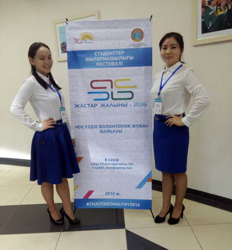 Бүгін, 8 сәуір күні, Астана қаласында «Жастар жалыны-2016» студенттік фестивалі басталды. Ол төрт жыл бойы Астананың ең екпінді және шығармашыл жастарының өкілдерін жинайды. Біздің институтымыздың намысын «Үздік еріктілер жобасы» номинациясында бірінші болып Мәжит Айжан және Шаирманова Ақнұр қорғайды.