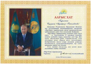 ЕАГИ-дің жастар ісі жөніндегі Комитеті "Нұр Отан" партиясынан алғыс хат алды