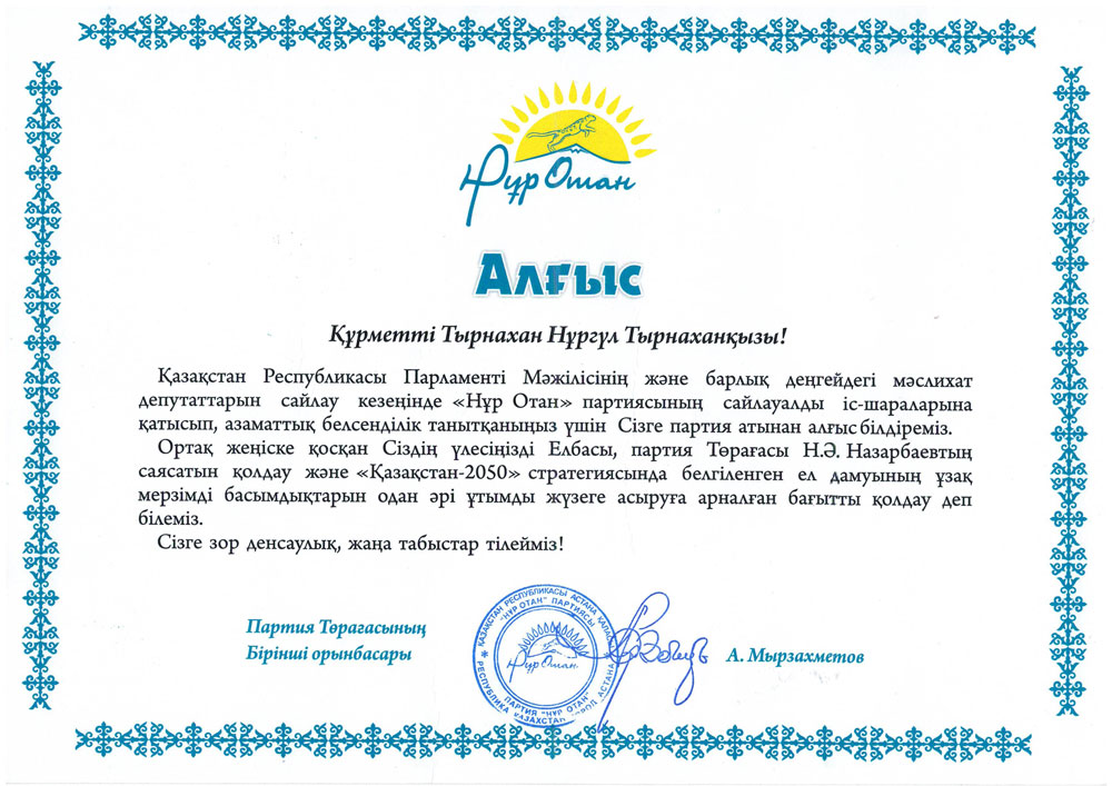 Председатель комитета по делам молодежи ЕАГИ получила благодарственное письмо от партии Нур ОтанОт Модератор-1 Сайта / 22.04.2016 Председатель комитета по делам молодежи ЕАГИ получила благодарственное письмо от партии Нур Отан-1.jpgПредседатель комитета по делам молодежи ЕАГИ получила благодарственное письмо от партии Нур Отан-2.jpg