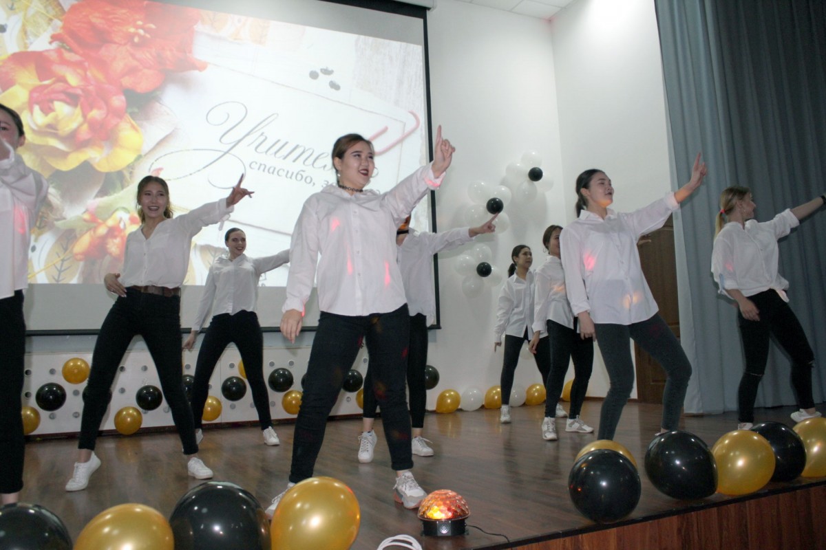 Мұғалімдер күнінде студенттер оқытушыларға жылы да жүрек жарды құттықтауларын білдіріп, педагогтерін өздерінің шығармашылық нөмірлерімен қуантып, ұмытылмас мереке сыйлады.