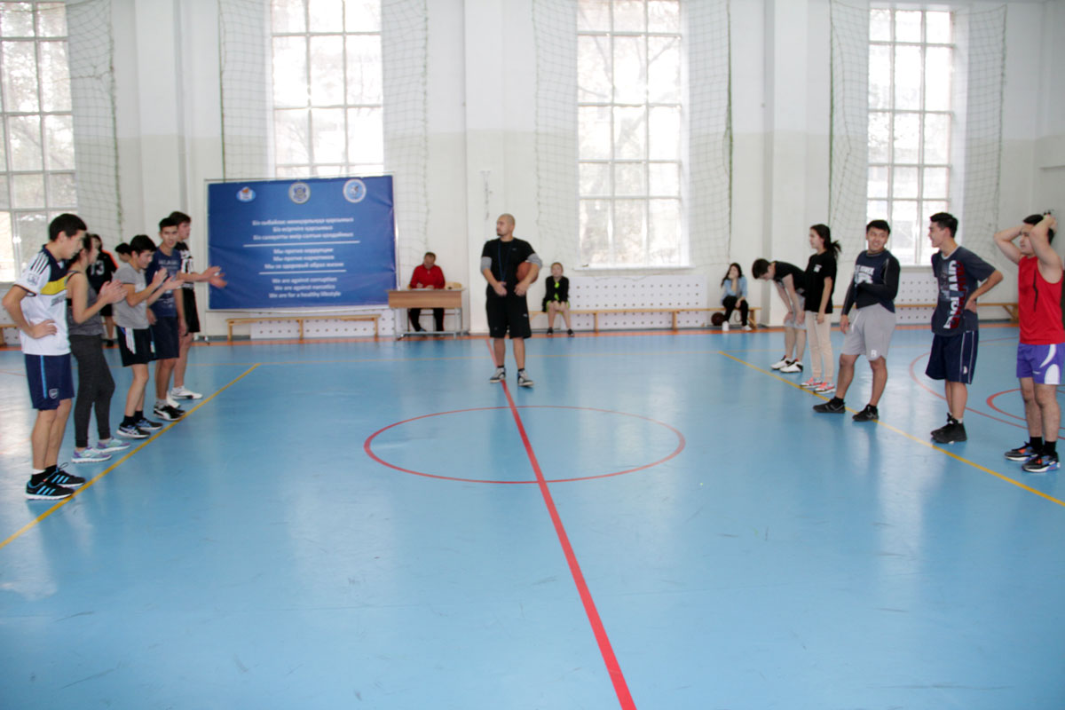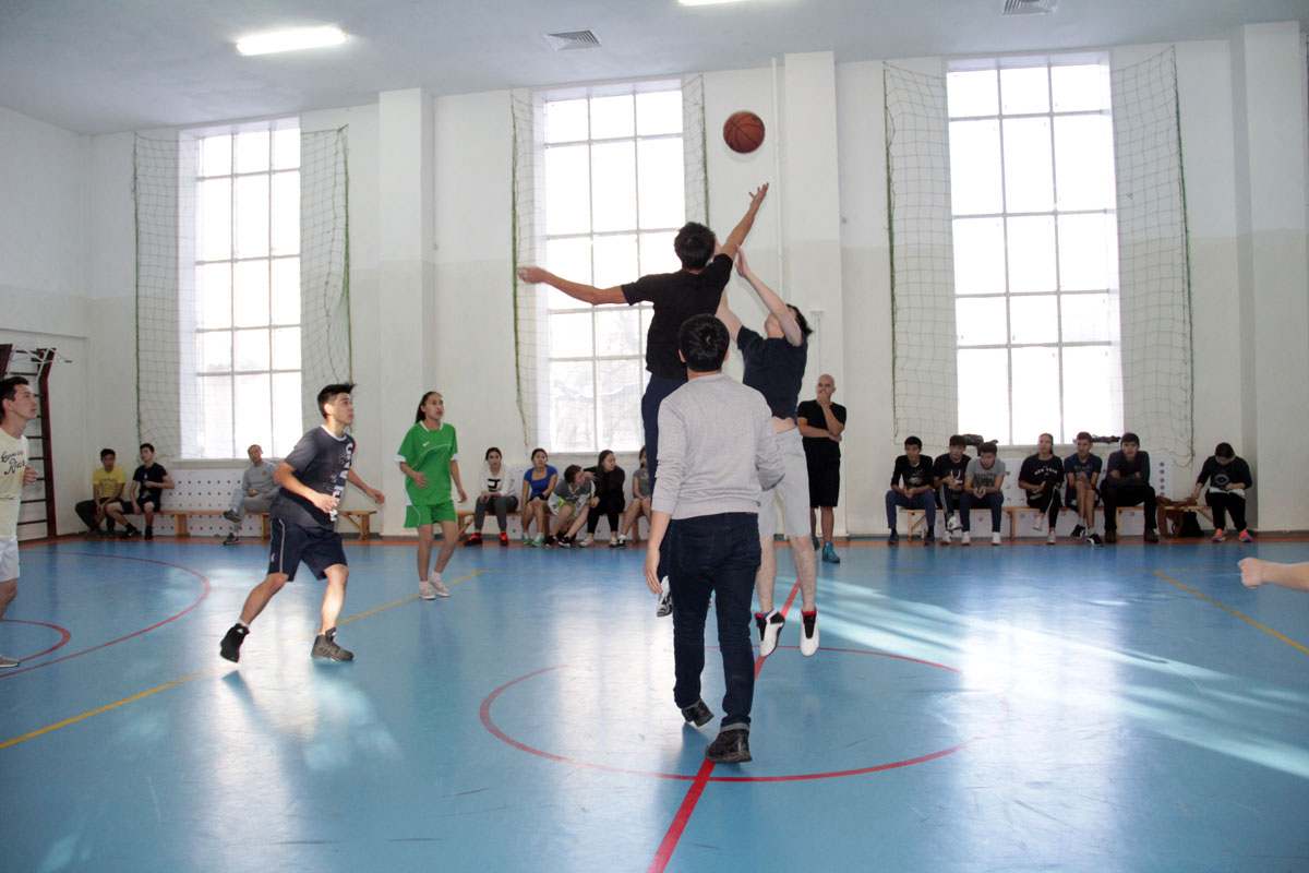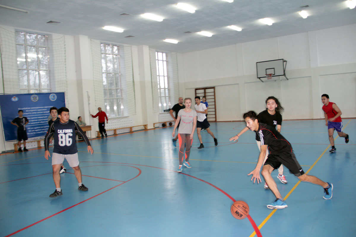 Баскетбол бойынша турнирде 1-орынды шетел тілдері кафедрасы, 2-ші және 3-ші орындарды экономикалық және математикалық және мемлекеттік-құқықтық пәндер кафедралары иеленді. Мемлекеттік-құқықтық пәндер кафедрасы ЮК-14 тобының командасы «Жеңіске жету жолында ерік үшін» дипломымен марапатталды. Баскетбол бойынша турнирдің үздік ойыншылары Жанбаев Евгений, Саян Мольдир, Салимжанов Еркебулан дипломдармен және бағалы сыйлықтармен марапатталды.