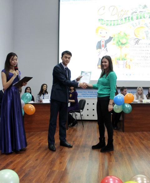 Қатысушы студенттер үш топқа бөлініп, интеллектуалдық жарыс өткізді. Қазылар алқасының шешімі бойынша 1-орынды символдық атауы бар «Теңге» командасы жеңіп алса, 2-орынды «Лимон зеленых» командасы, ал 3-орынды «Монета» командасы иеленді.