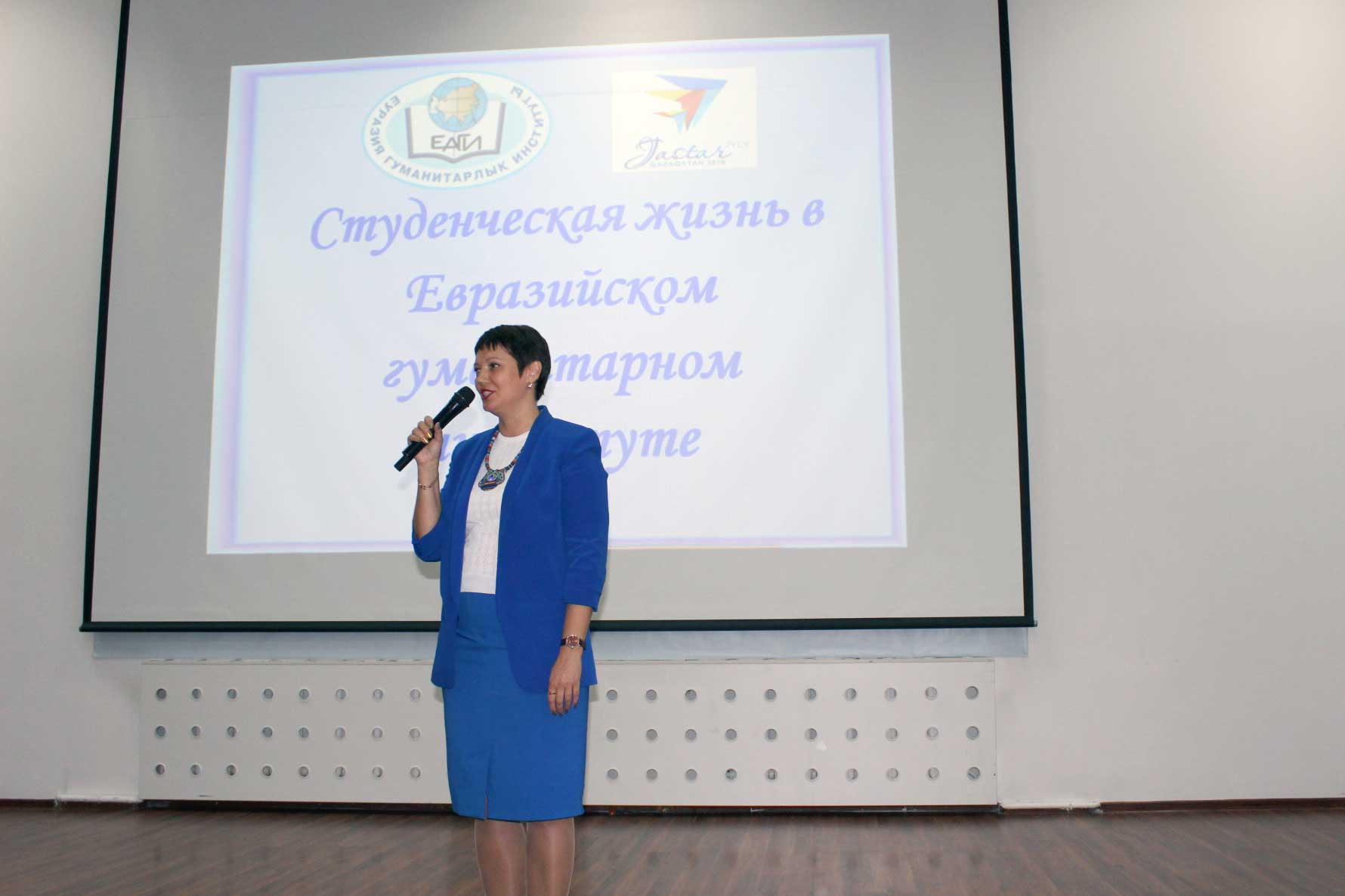 2017 жылдың 2-6 қыркүйегінде Еуразия гуманитарлық институтының конференц-залында институт әкімшілігінің бірінші курс студенттерімен кездесуі өтті. Кездесулердің басты мақсаты бірінші курс студенттерін ЖОО-ның әкімшілігімен, топ кураторларымен, студенттік өзін-өзі басқару көшбасшыларымен, ЕАГИ жарғысымен, жоғары оқу орны студентінің ар кодексімен және оқытудың кредиттік технологиясы бойынша оқу үдерісін ұйымдастырудың ережелерімен таныстыру болды. Институттың бірінші проректоры, психол.ғ.к., профессор А.Д. Исмаилов тілек және қолдау сөздерін білдірді. Проректор ЕАГИ-де оқу үдерісінің ерекшеліктеріне тоқталды, студенттердің келешекте өз салаларында бәсекеге қабілетті маман болуларына қажетті сапалы білім алуларына барлық жағдай жасалғанын атап өтті.